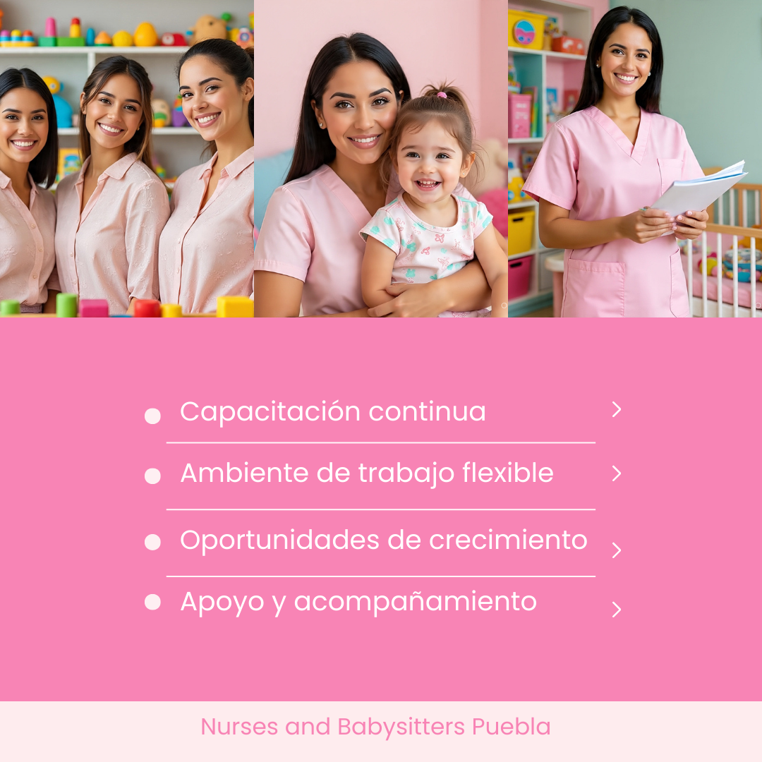 “En Nurses & Babysitters Puebla creemos que cuidar es más que una tarea: es una vocación. Si compartes nuestra pasión por el bienestar, la educación y la seguridad de los pequeños, este es tu lugar.”